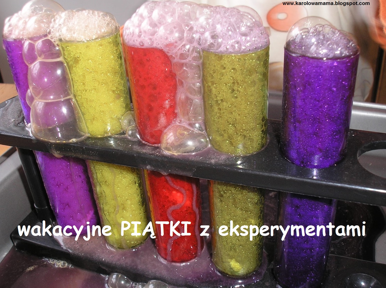 Bardzo spontanicznie i dość szybko powstał pomysł zabawy w wakacyjne piątki z eksperymentami którym postanowiłam podzielić się z innymi blogowymi mamami. Dziewczyny przyłączyły się do naszej zabawy...i nigdy nie sądziłam, że z małego pomysłu będę czerpać tyle frajdy i inspiracji na przyszłość. Lubię piątki bo oznaczają wolny weekend:) w wakacje lubiłam piątki jeszcze bardziej bo oznaczały kolejną porcję genialnych pomysłów na zaprzyjaźnionych blogach. Zresztą zobaczcie sami co powstało w ramach tej zabawy...