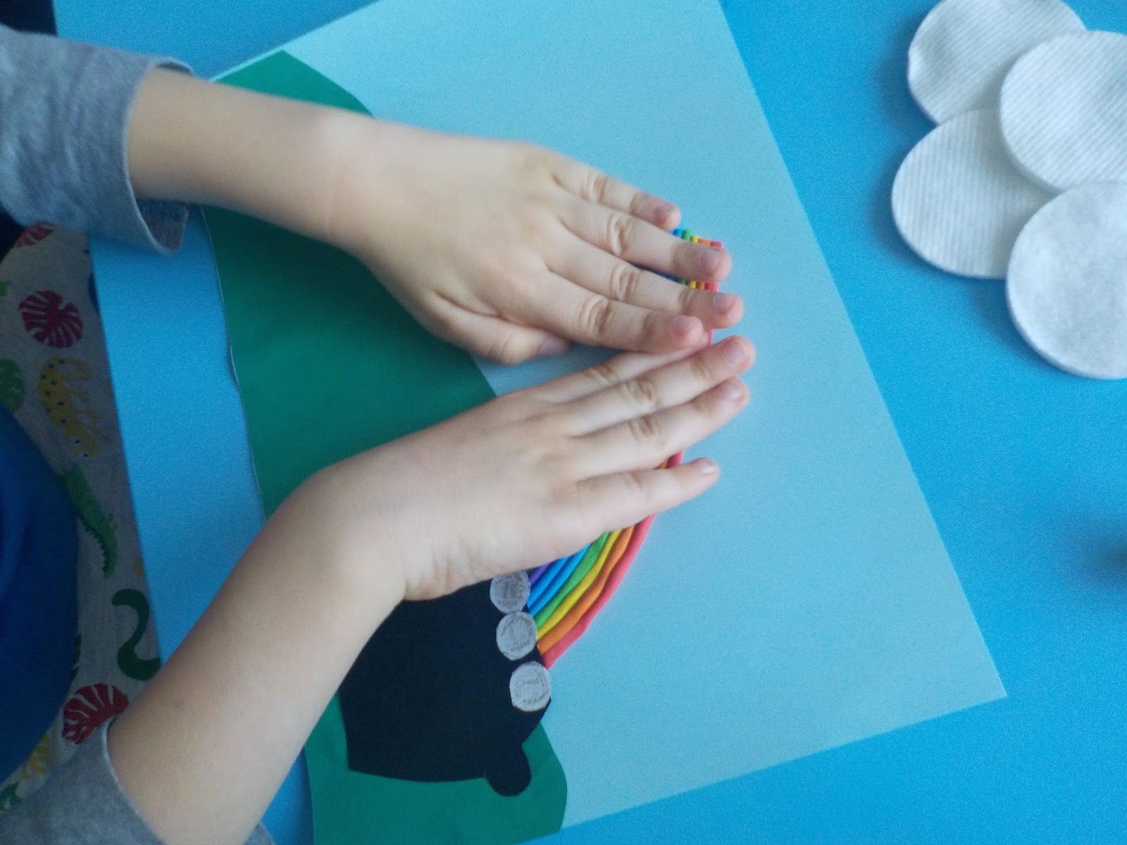 końcu tęczy. Z plasteliny Karol zrobił wężyki z których