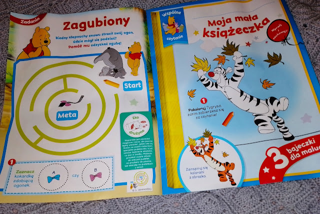 Bajecznie kolorowy magazyn, postacie zgodne z tymi jakie znają dzieci z bajki i mnóstwo zadań i ciekawostek. Razem z Prosiaczkiem pokolorujemy motylka, połączymy kropki aby powstały żołędzie, poszukamy różnic między obrazkami razem z Kubusiem i przejdziemy labirynt w poszukiwaniu zagubionego przez Kłapouchego ogonka. Są też zadania z kolorowaniem i poznamy literę P i dowiemy się co nieco o prosiaczkach.